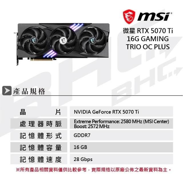 MSI 微星RTX 5070 Ti 16G GAMING TRIO OC 顯示卡