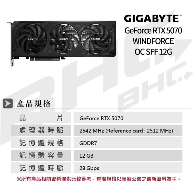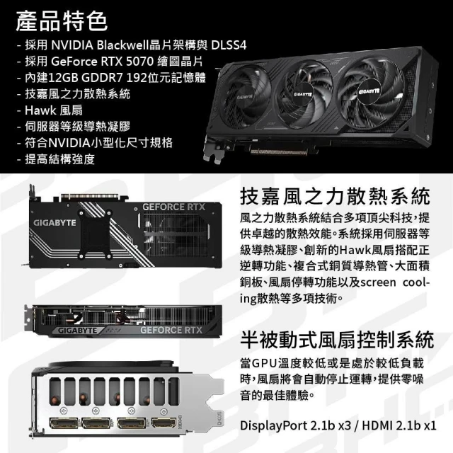 GIGABYTE 技嘉RTX 5070 WINDFORCE OC SFF 12G 顯示卡