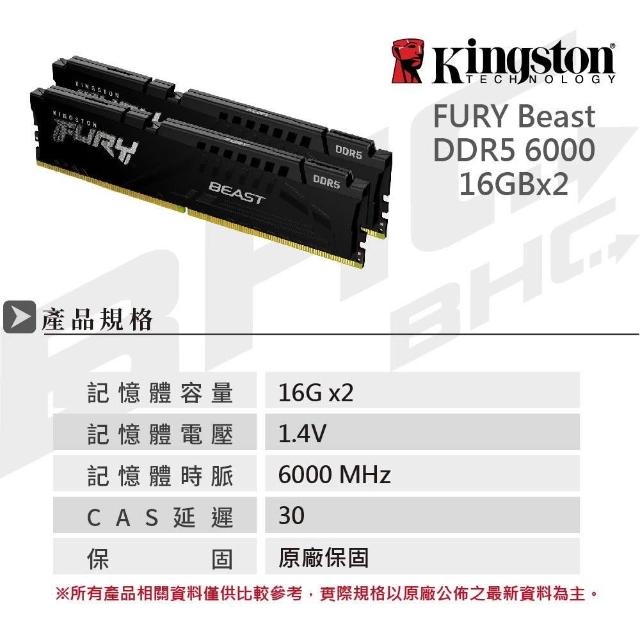 Kingston 金士頓FURY Beast DDR5-6000 16G*2 桌上型記憶體《黑》