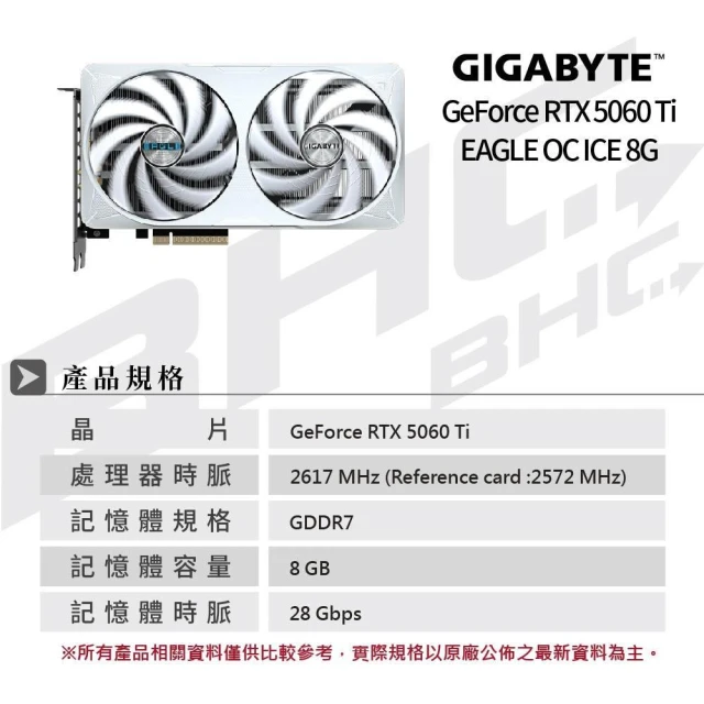 GIGABYTE 技嘉GeForce RTX 5060 Ti EAGLE OC ICE 8G 顯示卡