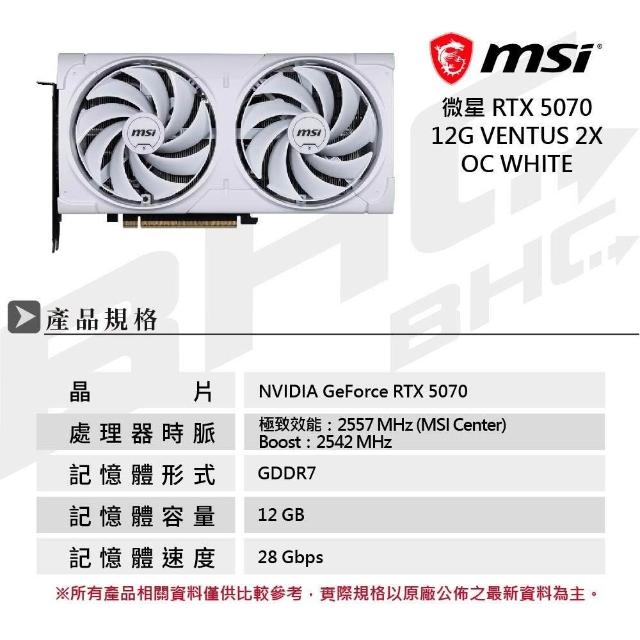 MSI 微星RTX 5070 12G VENTUS 2X OC WHITE 顯示卡