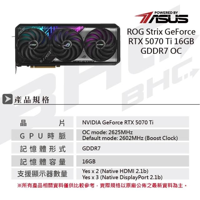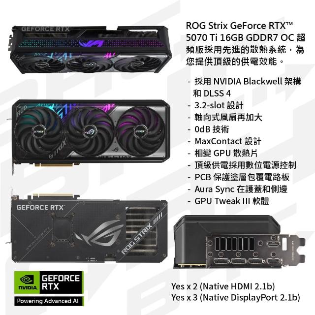 ASUS 華碩ROG Strix GeForce RTX 5070 Ti 16GB GDDR7 OC 顯示卡