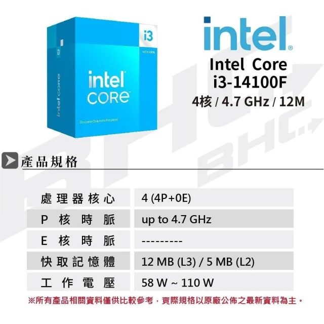Intel 英特爾CORE i3-14100F 四核心 中央處理器(盒裝)