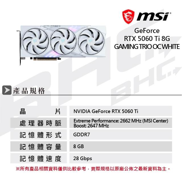 MSI 微星RTX 5060 Ti 8G GAMING TRIO OC WHITE 顯示卡