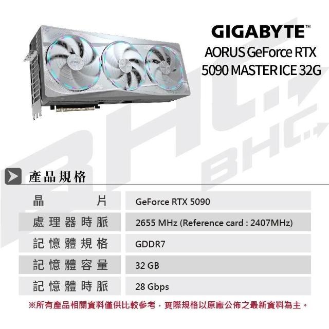 GIGABYTE 技嘉AORUS RTX 5090 MASTER ICE 32G 顯示卡