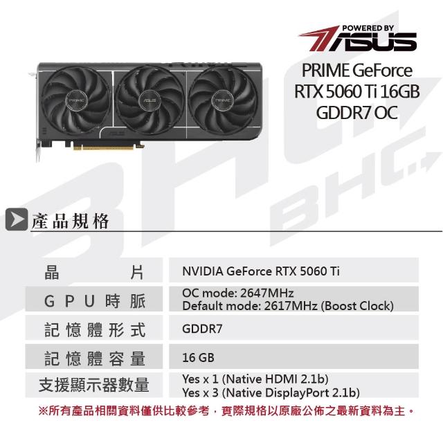 ASUS 華碩PRIME GeForce RTX 5060 Ti 16GB GDDR7 OC 顯示卡