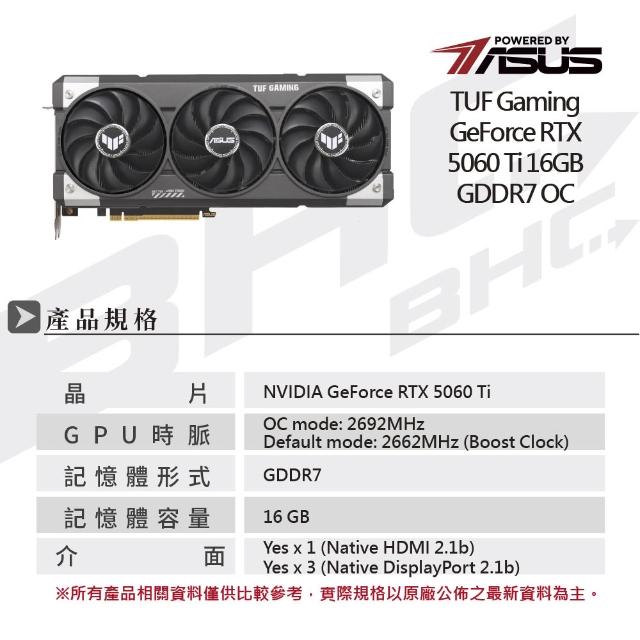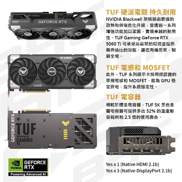 ASUS 華碩TUF Gaming GeForce RTX 5060 Ti 16GB GDDR7 OC 顯示卡