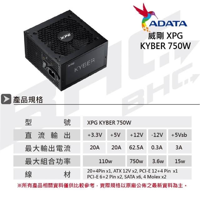 ADATA 威剛XPG KYBER 750W (80+金牌/ATX3.1/PCIe 5.1/直出/五年保固)