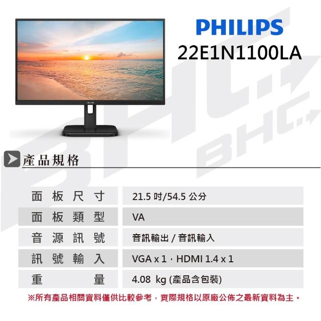 Phillips22E1N1100LA 液晶螢幕 (HDMI/D-SUB/VA/1ms/120Hz/喇叭)