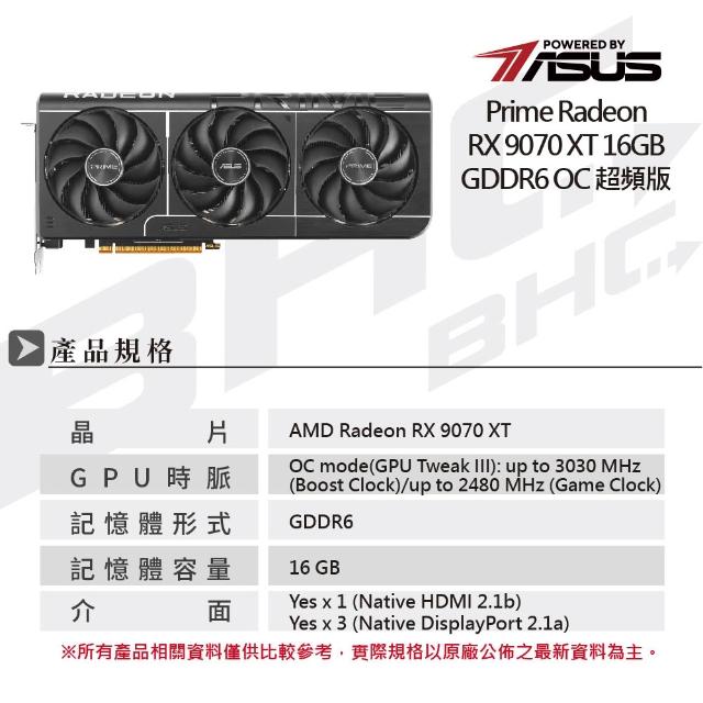 ASUS 華碩PRIME-RX9070XT-O16G 顯示卡