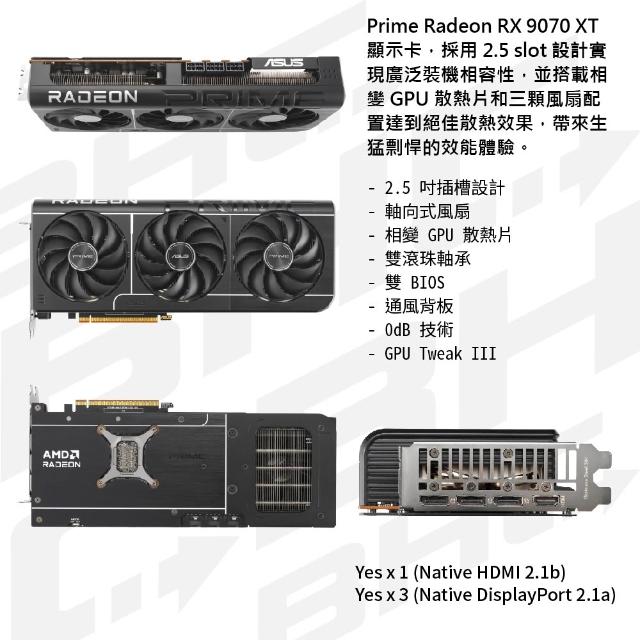 ASUS 華碩PRIME-RX9070XT-O16G 顯示卡