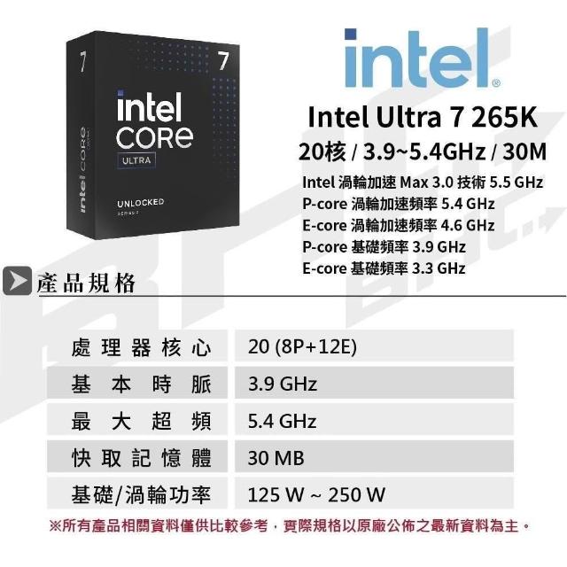 Intel 英特爾Ultra 7 265K 二十核心處理器/無風扇 B860組合包