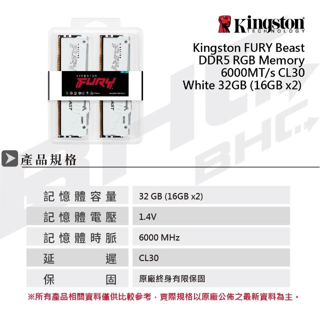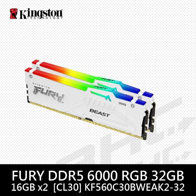 Kingston 金士頓FURY Beast DDR5-6000 16G*2 RGB 桌上型記憶體《白》