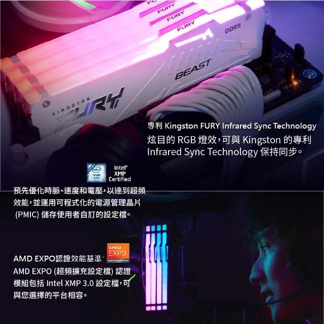 Kingston 金士頓FURY Beast DDR5-6000 16G*2 RGB 桌上型記憶體《白》