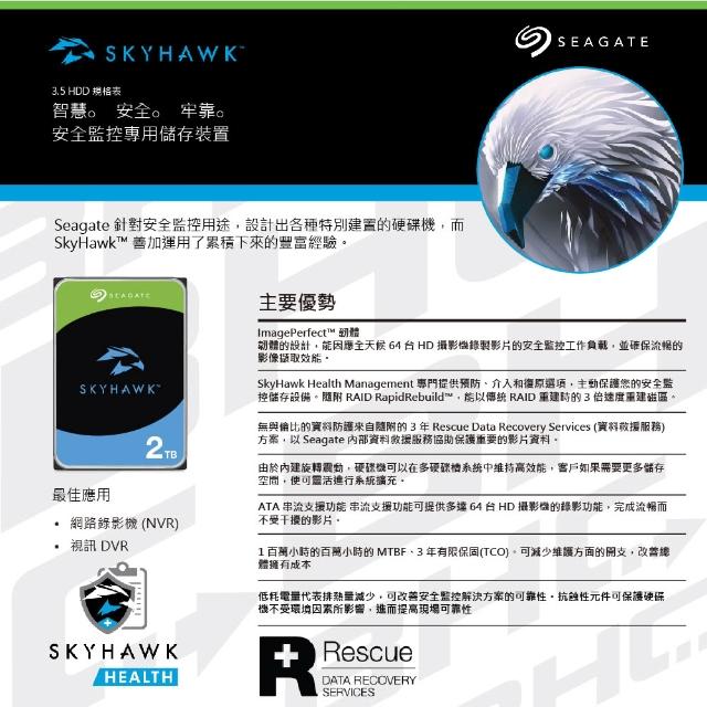 SEAGATE 希捷【SkyHawk】(ST2000VX017) 2TB/5400轉/256MB/3.5吋 監控硬碟