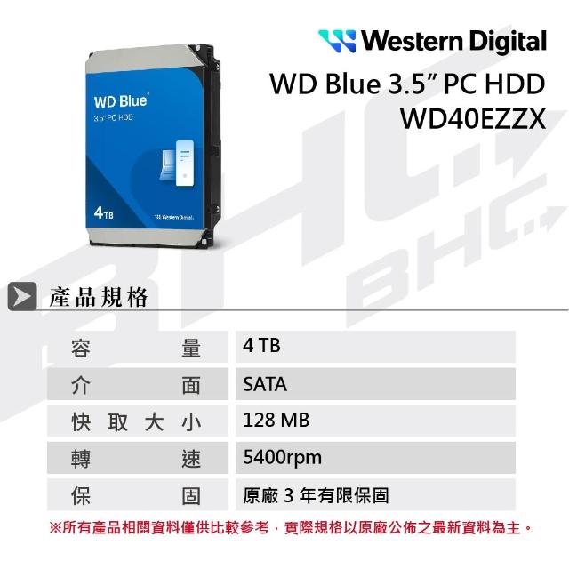WD 威騰4TB 5400轉 256MB快取 藍標硬碟 WD40EZZX