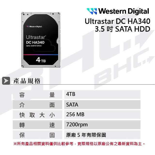 WD 威騰Ultrastar DC HA340 4TB 3.5吋企業級硬碟(0B47076)
