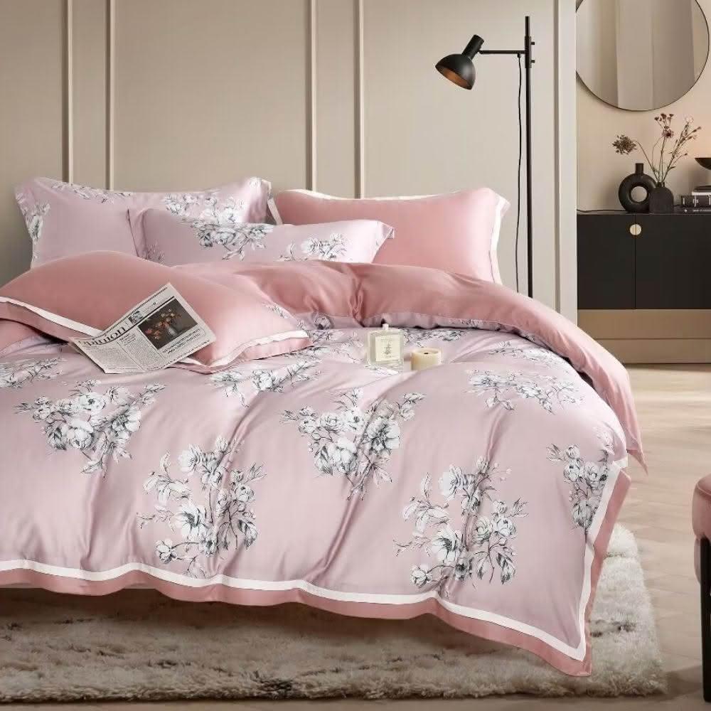 宜室家居 皇家100支天絲萊賽爾兩用被床包組-雙人5尺 100%純天絲/四件組/床單/床罩 時瑾(粉)