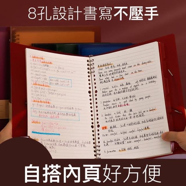 B5不壓手活頁資料夾 8孔活頁外殼復古文藝色系 跨頁書寫不壓手設計