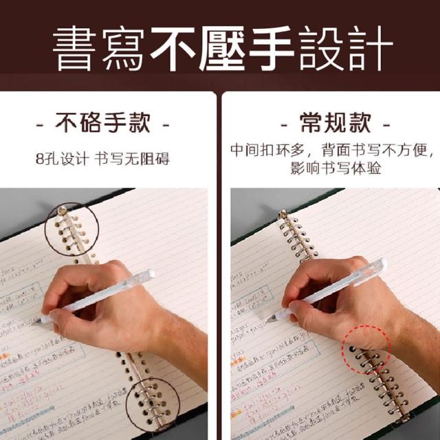 A4不壓手活頁資料夾 8孔活頁外殼復古文藝色系 跨頁書寫不壓手設計