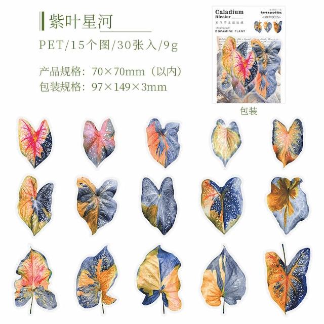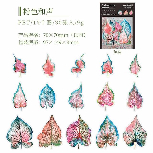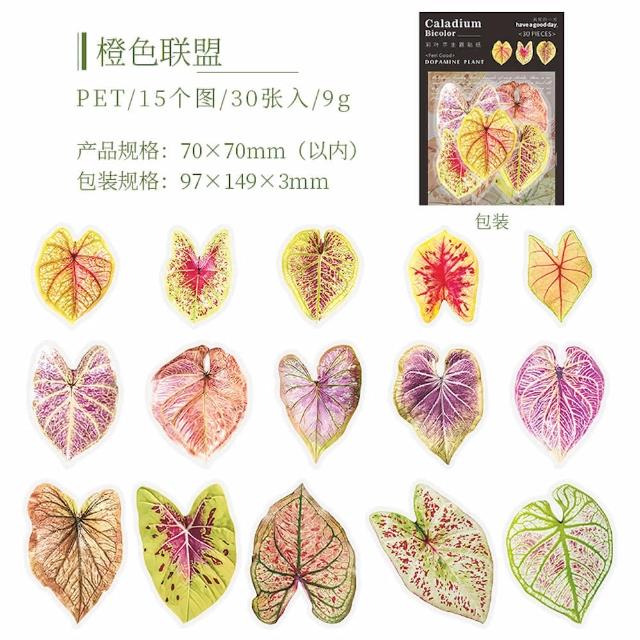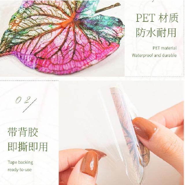 彩葉貼紙 透明防水貼紙 手作素材貼紙包手帳貼 貼紙包 PET貼紙 樹葉貼紙
