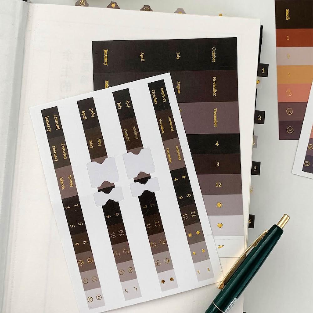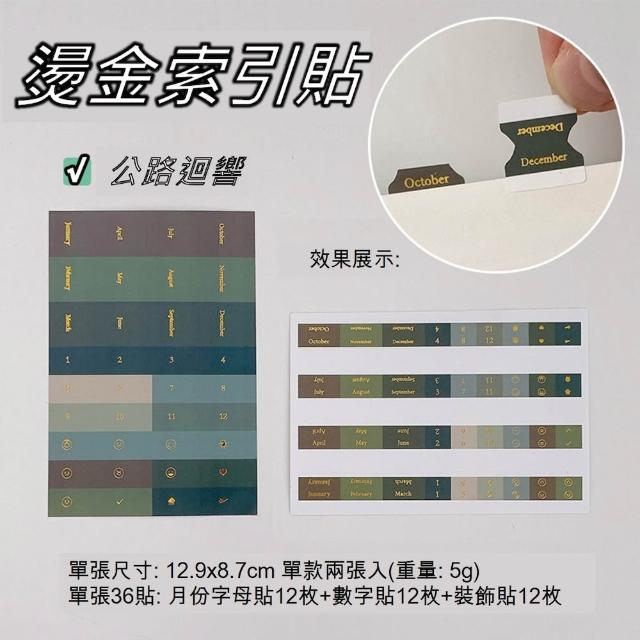 復古燙金月份數字索引貼 分類貼紙 索引貼 索引標籤 標籤貼紙
