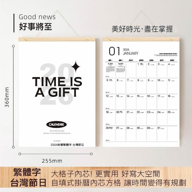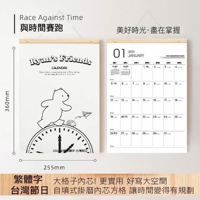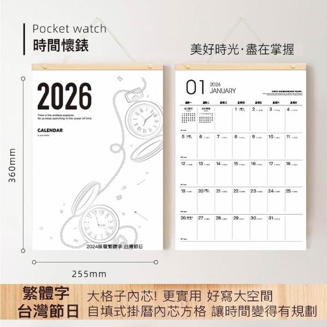 2026年木質吊掛式月曆 簡約素面可撕掛曆/行事曆/掛牆記事年曆/壁掛行事曆