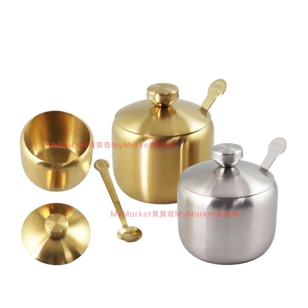 🌟磨砂質感🌟304不銹鋼 金色 廚房調味罐 (附匙) 佐料罐 醬料罐 糖罐 鹽罐 味精罐 辣椒罐 小吃店 調料罐 油醋罐