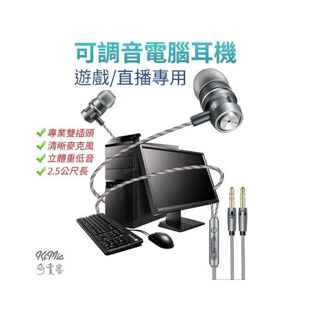 電競遊戲 直播 專用電腦耳機(2.5公尺長 入耳式 麥克風耳機 筆電 可用 桌機 可用 遊戲對戰 網紅必備)