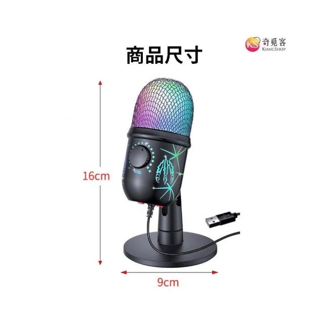 RGB 電競麥克風 電容式 電腦錄音 手機直播 k歌 降噪 遊戲 電競 發光 麥克風 USB插頭
