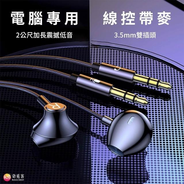 2米線長 半入耳式 金屬 有線耳機 3.5mm雙插頭 立體聲 線控調音 帶麥耳機 電腦耳機 遊戲耳機