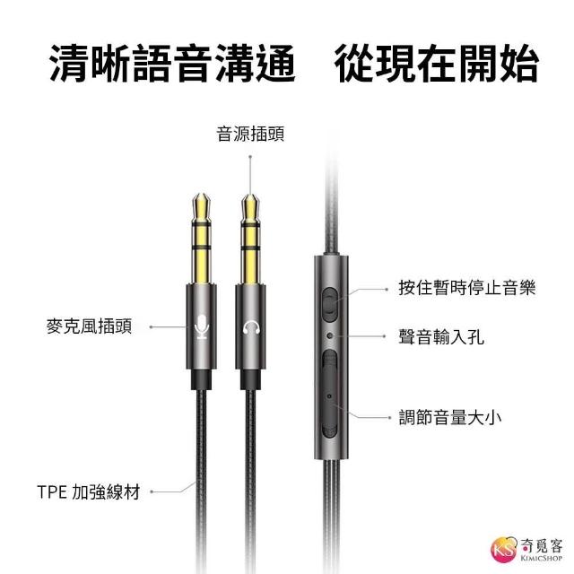 2米線長 半入耳式 金屬 有線耳機 3.5mm雙插頭 立體聲 線控調音 帶麥耳機 電腦耳機 遊戲耳機