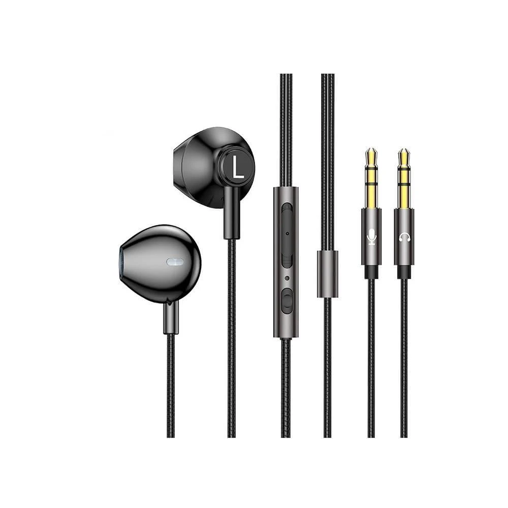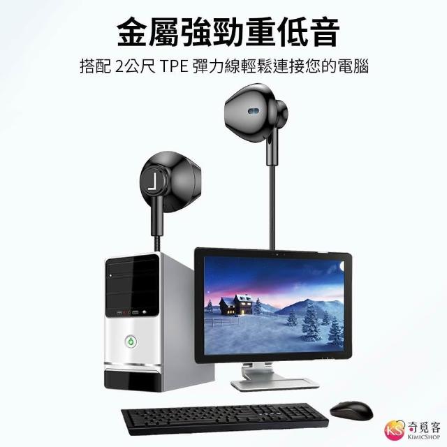 2米線長 半入耳式 金屬 有線耳機 3.5mm雙插頭 立體聲 線控調音 帶麥耳機 電腦耳機 遊戲耳機