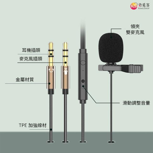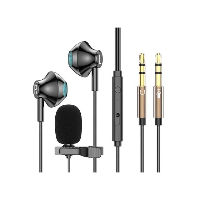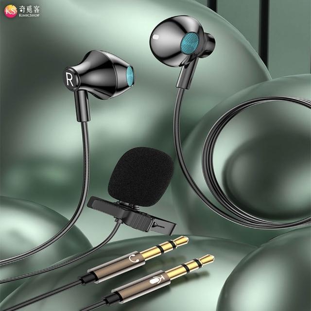 夾領式麥克風 2米線長 半入耳式 有線耳機 3.5mm雙插頭 立體聲 線控調音 帶麥耳機 電腦耳機 遊戲耳機