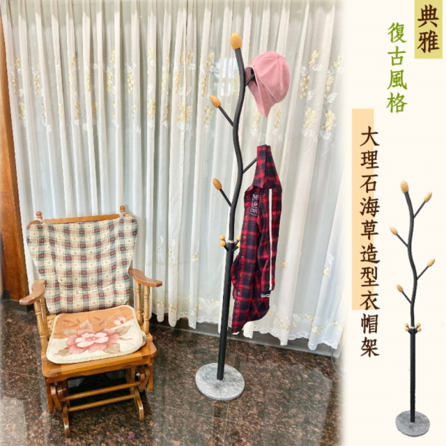 Monarch 尊爵家典雅復古風大理石海草造型衣帽架(台灣製 吊衣架 收納架 掛衣架 落地架 衣櫥架)