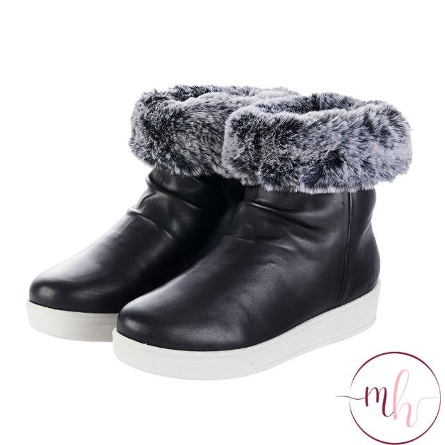 MMHH羊皮 反折 絨毛靴-時尚黑(雪靴 保暖 足弓)