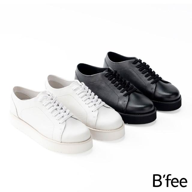 B'fee真皮綁帶厚底休閒鞋 顯瘦百搭 板鞋 小白鞋 上班學生必備 氣質白