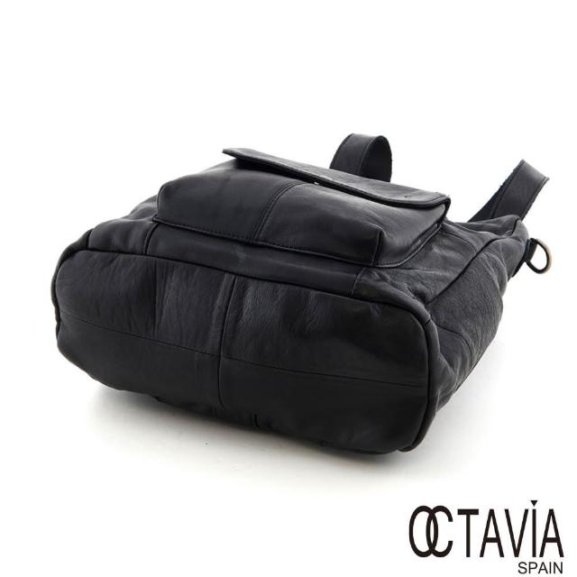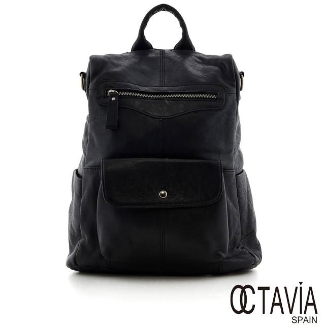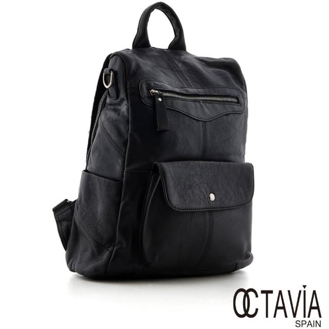 OCTAVIA 8真皮 迷途 拼貼全牛皮防盜式機車後背包(安全黑)