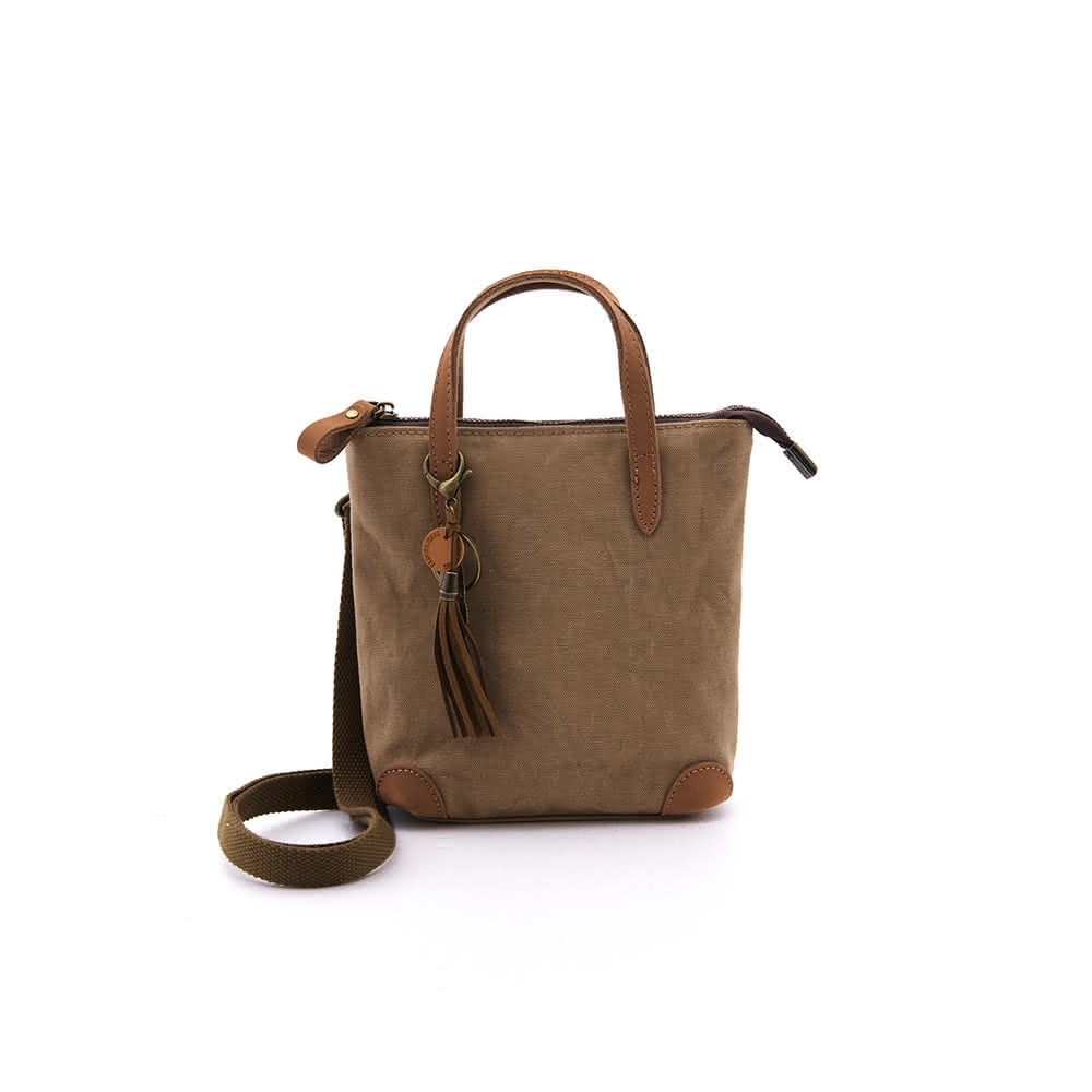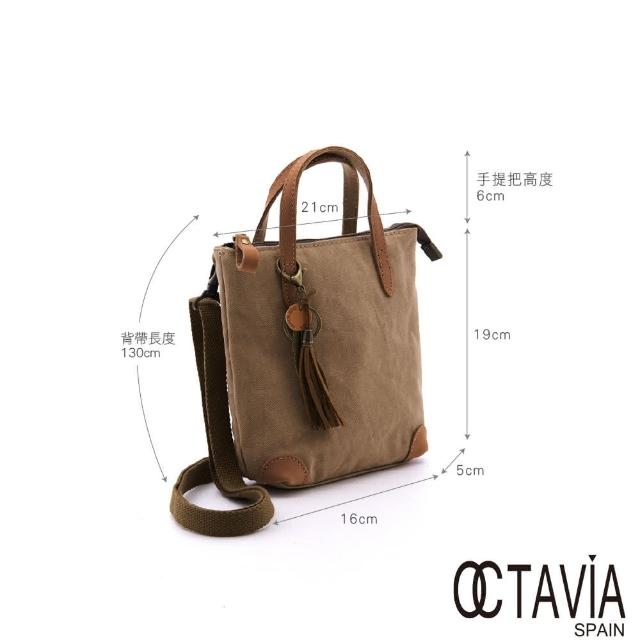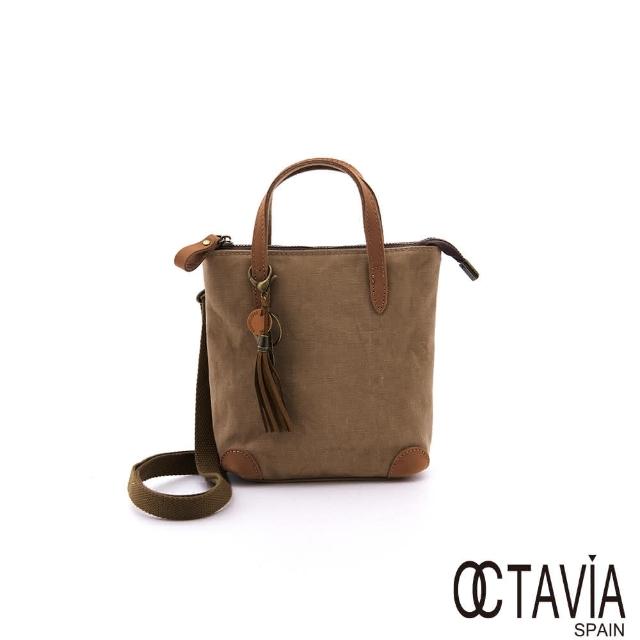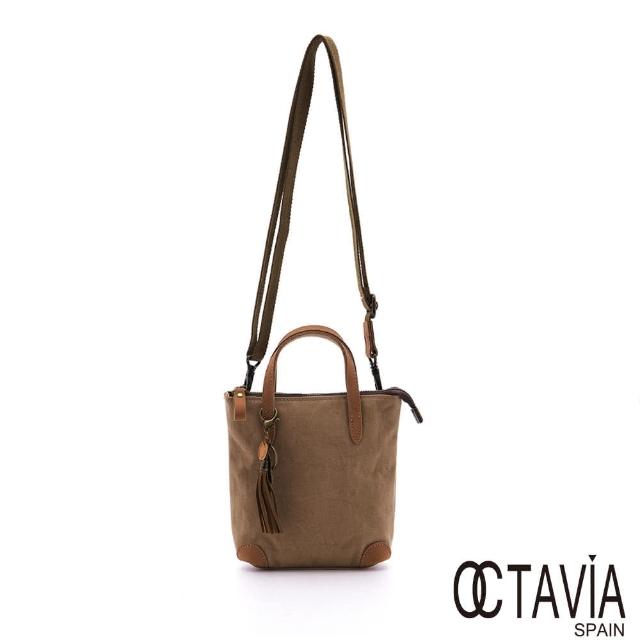 OCTAVIA 8迷你帆布愛書 流蘇配皮文青帆布隨身小包(泥卡其)