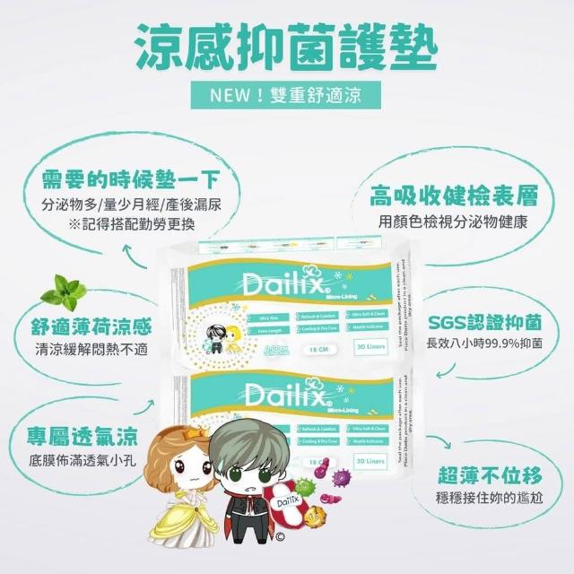 Dailix18cm每日健檢超乾爽透氣抑菌護墊 涼感款(30片裝 x 10入組送15片)