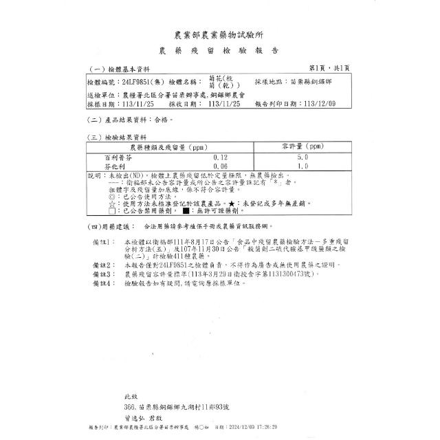 苗栗產,花香清新,食品檢驗合格