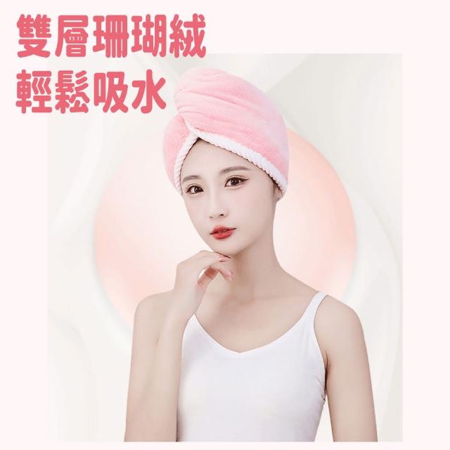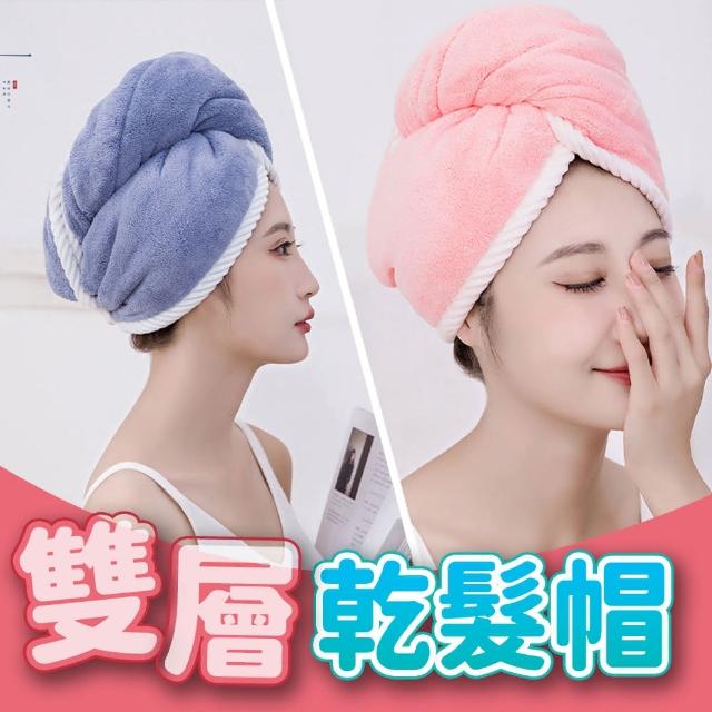 雙層乾髮帽(乾髮帽 超吸水加厚長浴帽 包頭巾 珊瑚絨乾髮帽 浴帽)