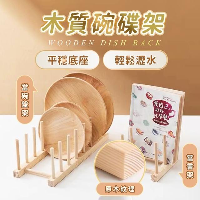 木質碗盤架(木質瀝水碗架 廚房收納盤架 杯盤收納 瀝水架 書架 碗架 晾碗架 餐盤架)