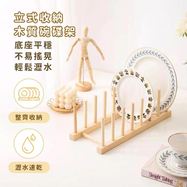 木質碗盤架(木質瀝水碗架 廚房收納盤架 杯盤收納 瀝水架 書架 碗架 晾碗架 餐盤架)