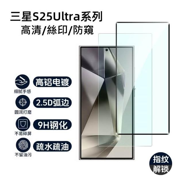 三星S25 Ultra保護貼 三星 S25 Ultra 高清/絲印/防窺 鋼化玻璃膜 S25Ultra玻璃膜 支援指紋解鎖