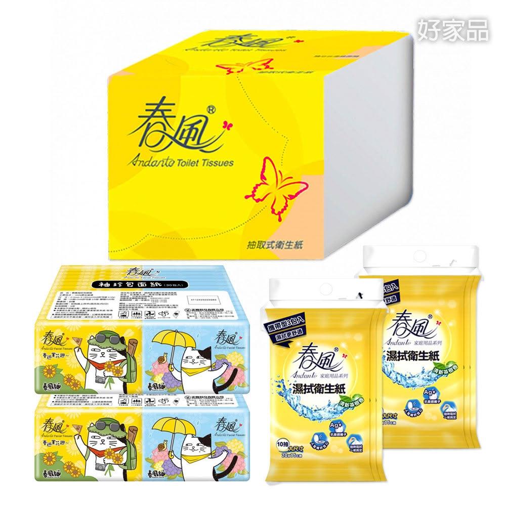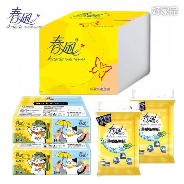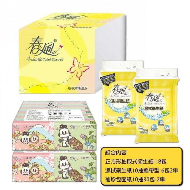 春風春風正方形抽取式衛生紙250抽18包+袖珍包面紙60包+濕拭衛生紙10抽攜帶型6入 倒抽衛生紙 濕式衛生紙 袖珍面紙