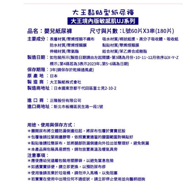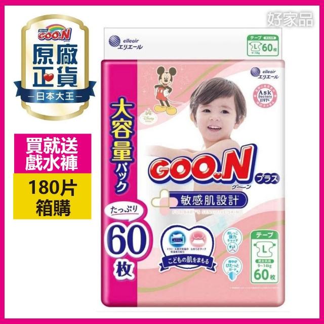日本大王GOO.N 大王 日本境內版 敏感肌UJ系列 黏貼型尿布 L 180片 好家品
