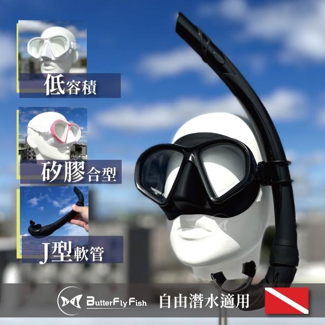 ButterflyFish 蝴蝶魚自由潛水 面鏡 呼吸管 (低容積面鏡 潛水面罩 MKS2201 J型呼吸管 可彎折)