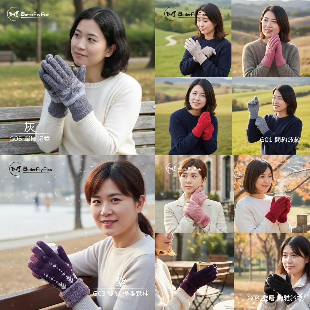 ButterflyFish 蝴蝶魚台灣製 女生保暖手套 針織手套 保暖手套 雙層保暖/單層輕柔
