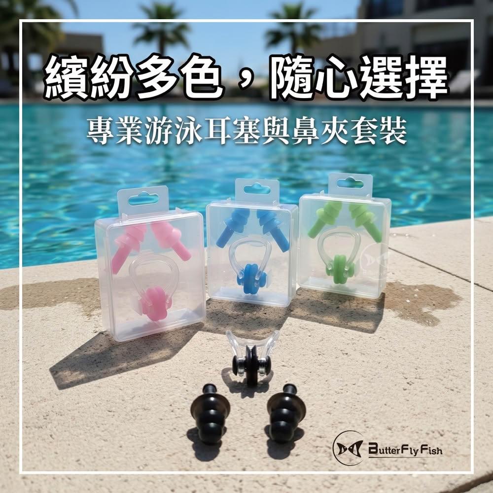 ButterflyFish 蝴蝶魚ButterFlyFish 游泳耳塞鼻夾組|三層傘狀防脫設計|高品質矽膠・附專屬收納盒・衛生便攜